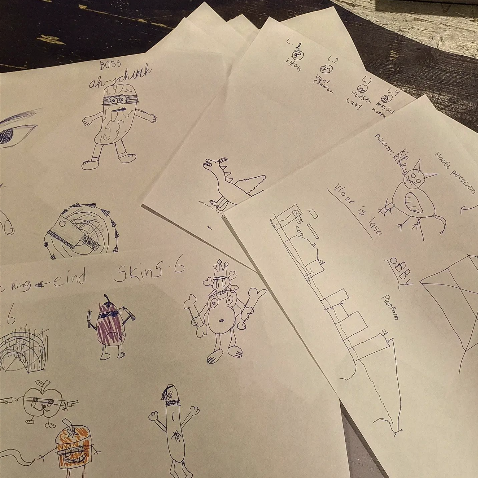 Niet alleen het kunnen verzinnen van characters en werelden/levels is belangrijk, maar juist ook het "vast leggen" van die ideeën! We leren met elkaar brainstormen en communiceren over concepten.